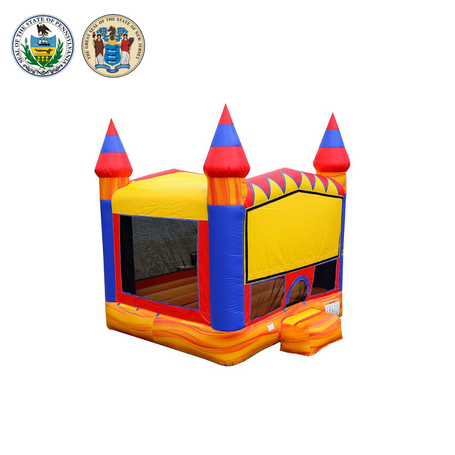 The Turbo Blaze 13' X 13' Bounce House is a speedy inflatable for fast fun! The fiery color scheme is made for speed. A basketball hoop is also inside to complement the ample bouncing space. Made with lead-free 15 oz. PVC vinyl, this unit is a reliable inflatable for parties and events!